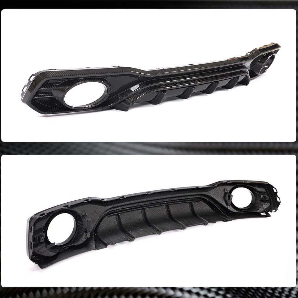Ahacarbon carbon fiber rear bumper diffuser for Audi S7 A7 Sline C8 Sportback.This diffuser is crafted from genuine 3x3 carbon fiber that will nicely match any other carbon fiber parts you have on your car from Ahacarbon. This carbon fiber rear diffuser for Audi S7/A7 Sline is backed by our fitment and quality guarantee to ensure that this product is going to fit well and hold its quality. The diffuser is a direct replacement for the factory plastic diffuser, no modifications are needed and is a quick and easy install, simply unbolt your factory diffuser and mount ours using the self tapping screws included. Professional installation is still recommended. Our carbon fiber diffuser will fit Audi S7/A7 Sline C8 Sportback 2019-2022. To ensure that the diffuser has a nice sheen and does not fade we complete the rear diffuser with our high quality double layered anti-UV clear coat to ensure that this product will not fade or discolor over time. Choose Ahacarbon carbon fiber bumper diffuser for your S7/A7 Sline carbon fiber needs and receive a product you can be proud to install on your vehicle.