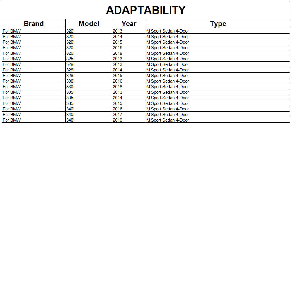 Model: for BMW 3 Series F30 (318i 320i 328i 330i 335i 340i) M Sport Sedan