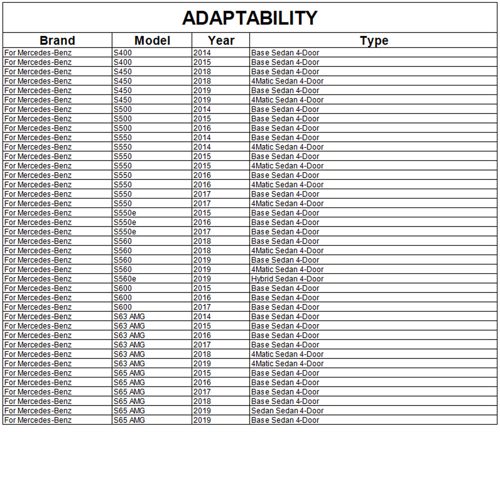 - For Mercedes Benz S Class W222 (S400 S450 S500 S550 S560 S600 S63 S65 AMG) Sedan