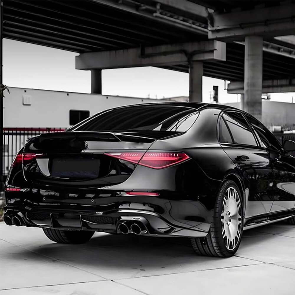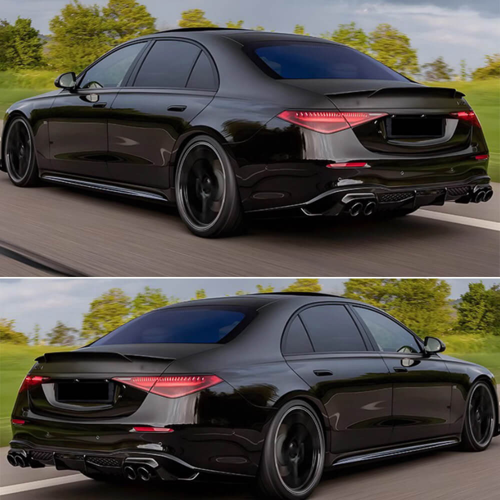 Ahacarbon carbon fiber rear trunk spoiler for Mercedes Benz S Class W223 S450 S500 S580 S680 4MATIC Sedan 2021-2025, is made from Genuine Molded Carbon Fiber Spoiler. You can add a sporty look to your Mercedes Benz S Class W223 Sedan with our carbon fiber spoiler wing. We are very proud to offer you carbon fiber molded trunk spoilers. Following the line curvature of your W223 trunk hatch the spoiler has a better profile that gives your Mercedes Benz an added performance aesthetic, dramatically improve styling. We designed our rear trunk spoiler also to help improve the aero efficiency of Mercedes Benz S Class W223 (S450 S500 S580 S680 4MATIC) Sedan. Using the latest in aero simulation and CAD technology, we engineered a spoiler that looks great, our trunk wing spoiler is simple to install (no drilling) just with double sided tape, doesn't impede the rearward visibility of a driver, and most-importantly, reduces overall drag and increase rear downforce (helping to improve stability at speed)!