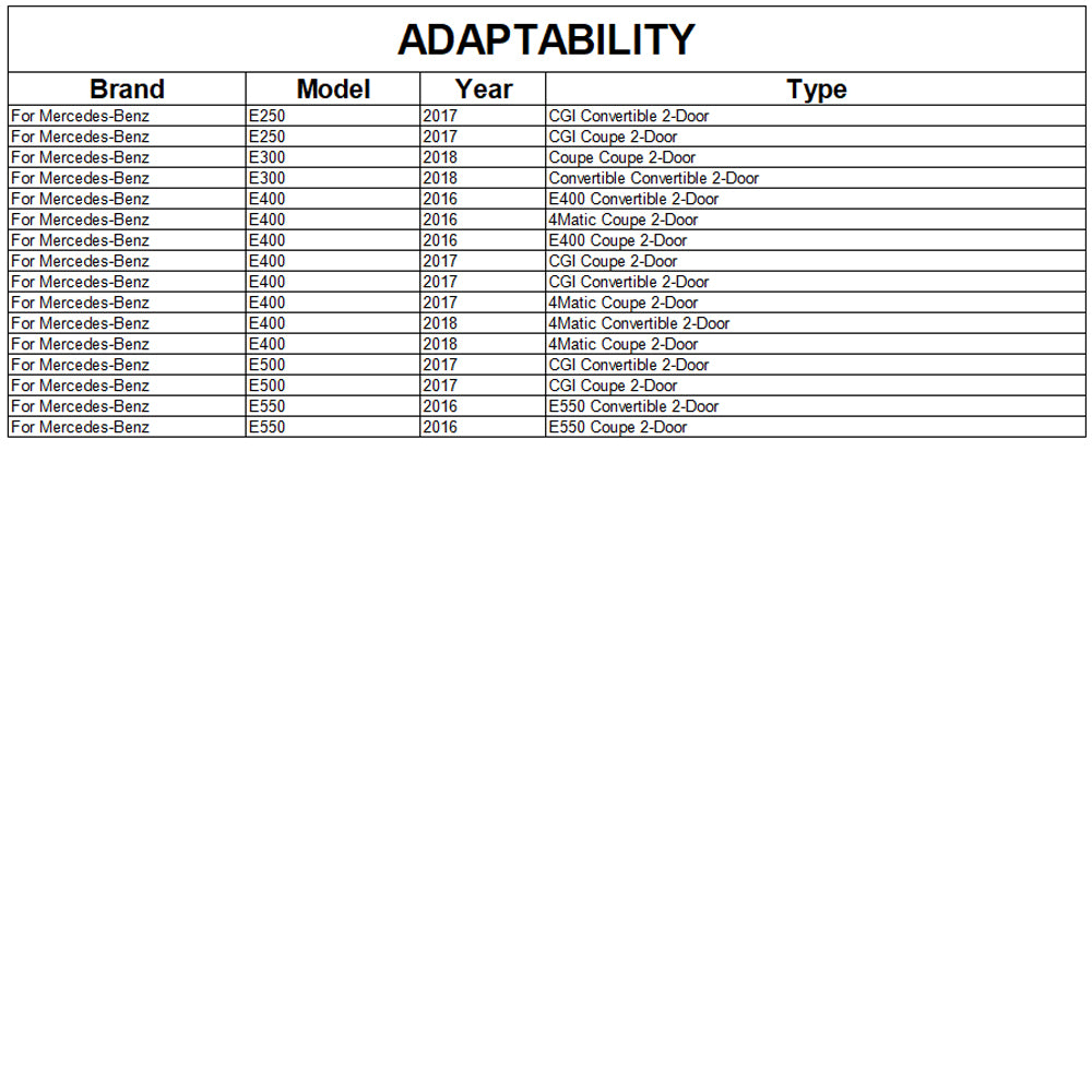 - Note: Not for Mercedes Benz C238/A238 Base/AMG Models