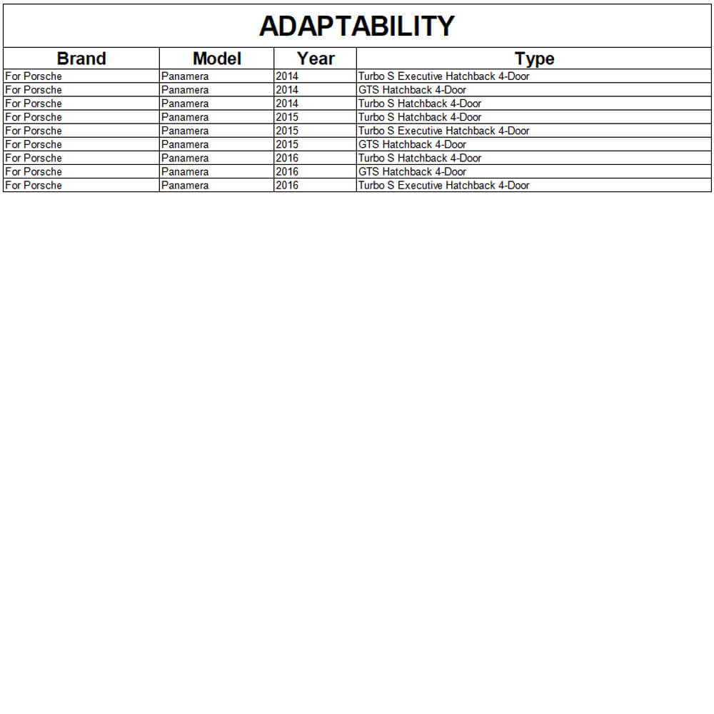 - Model: for Porsche Panamera 970 (Panamera Turbo/Panamera Turbo S/Panamera Turbo S Executive/Panamera GTS) Hatchback 5-Door
