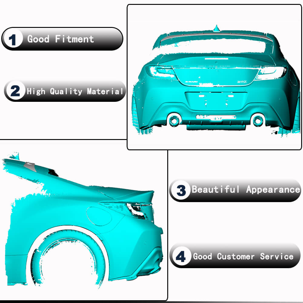 - Functions: Light and durable, create a new iconic look, enhancing the aerodynamic performance of the car