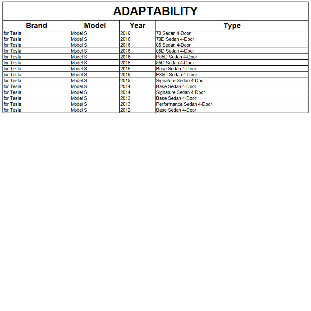 - Model: for Tesla Model S (60 60D 85 85D P85D) Sedan