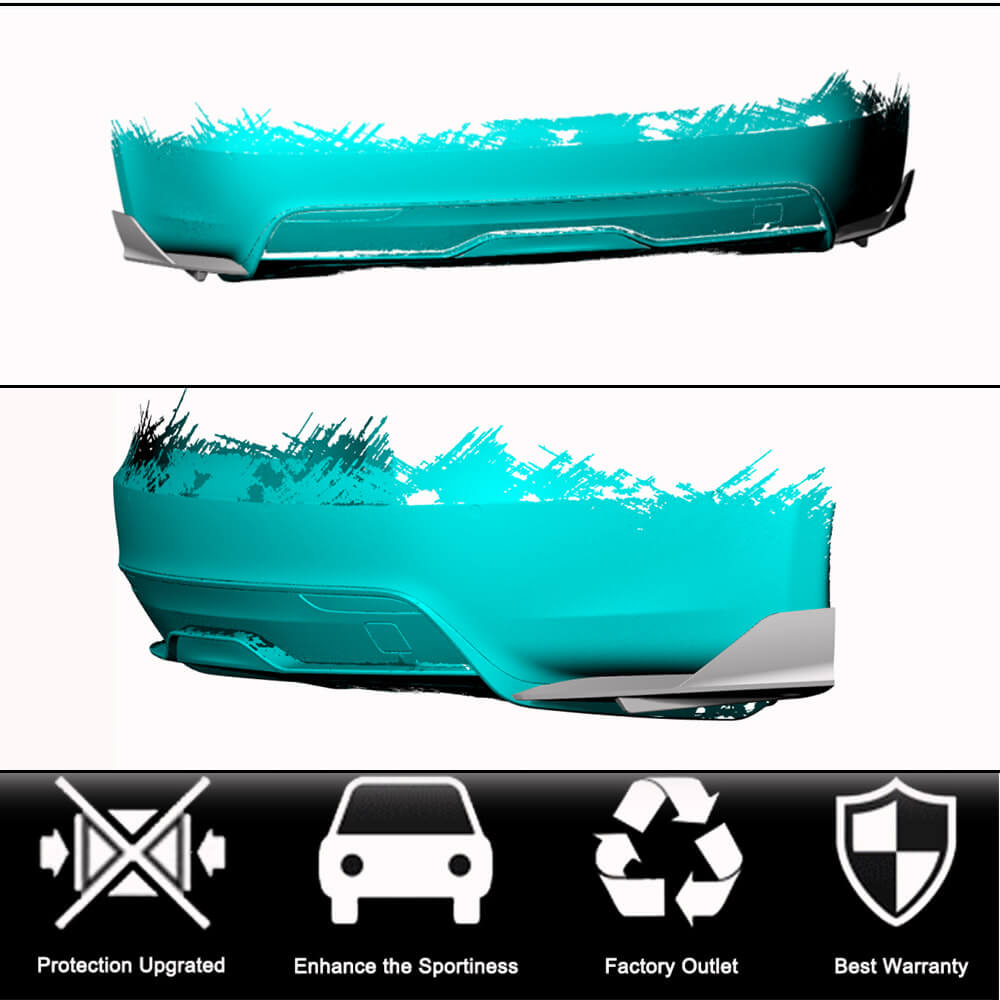 spoiler. This rear bumper vent is made from Genuine Molded Carbon Fiber. You can add a sporty look to your Tesla Model S Sedan 4 Door with our carbon fiber rear Bumper splitters.The carbon fiber construction is very high quality and lightweight. Installation is easy, our rear bumper splitters is simple to install with tape, and most-importantly, reduces overall drag and increase rear downforce (helping to improve stability at speed)!